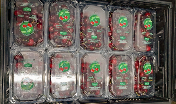 Cerezas de Maloney's Eye comercializadas por Halls.