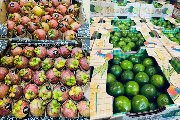 Mangostán de Colombia (izq.) y limas Tahití de Brasil. En verano, SE-SA también comercializa fruta de otros orígenes y variedades, como la lima persa.