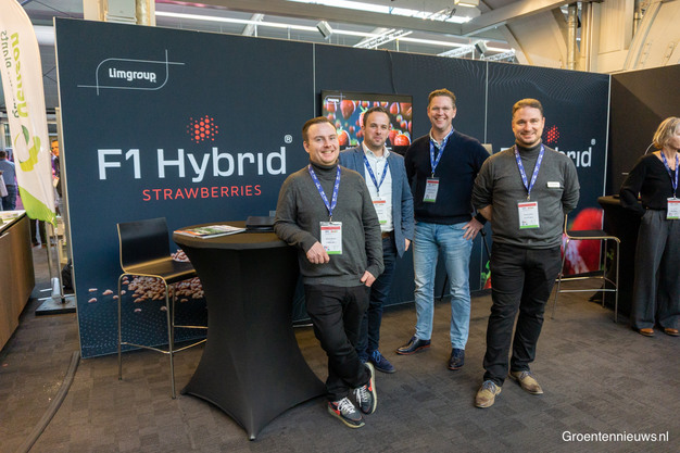 Limgroup ha lanzado su primera variedad híbrida de fresa. En la foto: Sjoerd Gipmans, Martijn Davids, Martijn van Haastert y Roland Sweijen.