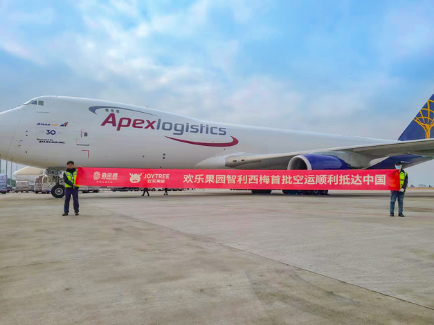Viaje inaugural de las ciruelas chilenas de Joytree transportadas por vía aérea.