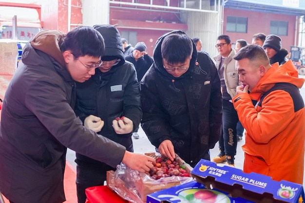 En la mañana del 6 de febrero, el primer lote de ciruelas chilenas transportadas por vía aérea desde Joytree llegó al Shanghai Huizhan Fruit and Vegetable Market, iniciando oficialmente las ventas en el mercado chino esta temporada. Una animada ceremonia de apertura atrajo a numerosos comerciantes y compradores, mientras los ansiosos clientes saboreaban y elogiaban las recién llegadas: "La piel es crujiente y la pulpa jugosa". "Tanto las blandas como las más duras son deliciosas, de tamaño perfecto para un solo bocado". "Cada ciruela es tierna y dulce, rebosante de jugo".