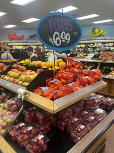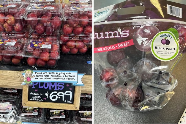 Derecha: Ciruelas sudafricanas en Trader Joe's.