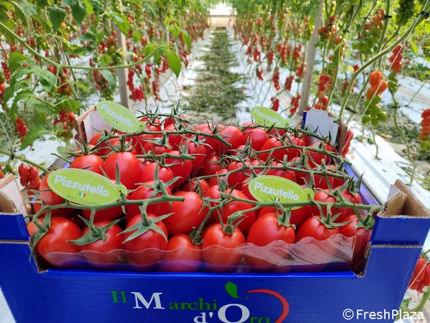 La empresa de cultivo siciliana Il Marchio d'Oro abastece al mercado con una producción casi durante todo el año de diferentes variedades de tomates y pimientos Lamuyo amarillos y rojos. Además de tomates en rama, la empresa cultiva tomates cherry, cherry pera y pera.