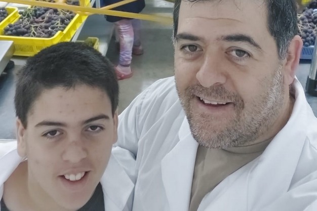 Yair Bar-Hai (derecha) con su hijo visitando una envasadora de uvas de mesa en Sudáfrica.