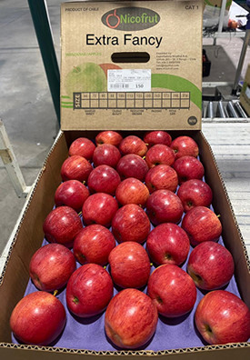 Si bien la temporada de las manzanas Royal Gala chilenas suele comenzar en el mes de febrero, este año la campaña está sufriendo un retraso de unos diez días. "La demanda es muy fuerte, desde el resto de países de Sudamérica y de la India en particular. Los volúmenes son más bajos que los del año pasado, pero la fruta tiene una coloración muy bonita", dice Silvia Piezzi, quien colabora con la empresa chilena Nicofrut desde hace 15 años. "Los clientes piden cada año la misma marca, ya que ofrece calidad y una buena presentación".