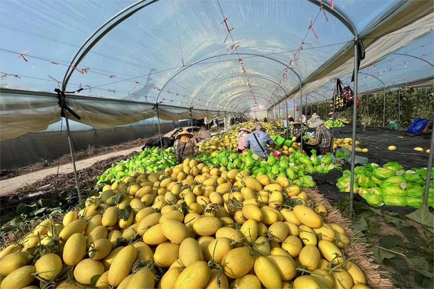 Según Joy, el mercado antes prefería melones medianos, pero este año hay una tendencia hacia los de mayor tamaño. "Hay dos razones para ello. Por un lado, el precio unitario de los melones ha disminuido, por lo que los de mayor tamaño ofrecen una mejor relación calidad-precio. Por otro lado, los melones grandes tienen un precio de venta por unidad más alto, lo cual impulsa el volumen de ventas total. Además, en términos de sabor, los melones grandes de la misma variedad ofrecen una mejor experiencia. En lo que respecta a la producción, los agricultores también prefieren los melones grandes, ya que ofrecen un mayor rendimiento por superficie", explica Joy.