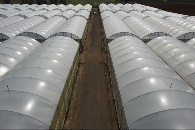 Invernadero completamente cubierto con la película plástica Solex de Agriplast.