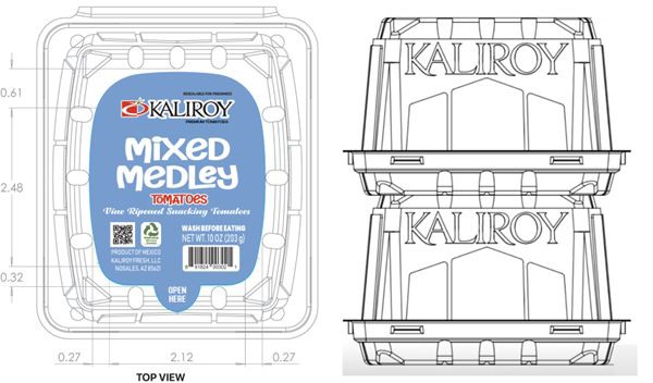 En la feria Viva Fresh, que se celebrará en Houston, Texas, del 11 al 13 de abril de 2024, Kaliroy Fresh LLC lanzará un nuevo y exclusivo envase clamshell para tomates snack fabricado con PET reciclado. El diseño del clamshell está inspirado en la arquitectura de la estructura de un invernadero y los asistentes a la feria podrán verlo en persona en el stand 1110.