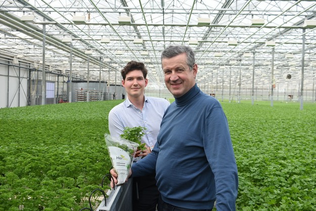 Con un enfoque en la sostenibilidad, el vivero ha invertido en un sistema de cultivo vertical, según cuentan Steven y Louis. "Podemos cultivar casi por completo con energía renovable, sin combustibles fósiles, y así logramos una producción más libre de CO₂. El uso de agua se mantiene al mínimo y el impacto en nuestro entorno es mucho menor gracias al cultivo en capas. Gracias a este sistema de cultivo también logramos producir porciones más pequeñas de hierbas de muy buena calidad y frescura. Así es como surgieron las hierbas para cosechar. Ahora estamos tratando de abrir nuevos mercados con ellas. Estas ofrecen todos los beneficios de las hierbas frescas y vivas, como un mejor sabor, aroma y frescura, combinados con la comodidad de un envase más pequeño. Además, también se utiliza mucho menos plástico que con las hierbas cortadas".