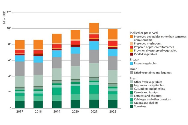 Figura 1: Comercio mundial de hortalizas, 2017-2022 EE. UU., cada vez más dependiente de la importación
