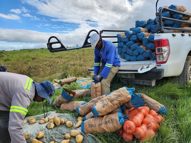 Por el momento, todas sus finanzas se destinan a la producción; ha invertido todos sus ahorros en el negocio, lo que deja poco para perfeccionar el producto. "Las patatas de siembra de WesGrow, de la provincia del Noroeste, nos cuestan 27.000 rands [1.340 euros] de transporte solo para tres hectáreas, cuando no llega un camión cargado a Cabo Oriental. Tenemos una buena relación con Ettienne Groenewald, de WesGrow, y nos ayuda cuando viene un cargamento a Cabo Oriental, y pagamos una fracción del coste. Queremos ampliar a 5 hectáreas, y nuestro objetivo son 35 toneladas por hectárea (la media del sector es de unas 45 toneladas/ha) porque nuestros suelos aún necesitan un poco de trabajo".