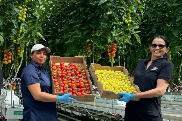 De Jong dice que Village Farms está cosechando actualmente variedades de tomate de fruto pequeño como Heavenly Villagio Marzano®, Good Day Sunshine®, Cabernet Estate Reserve®, Cherry no. 9®, Lip Smackn' Grape®. "También estamos comenzando a cosechar nuestras variedades más grandes, incluyendo como Sinfully Sweet Campari® y Sensational Sara®, que es un tipo cocktail grande", apunta. "También están listas para la recolección nuestra variedad de tomate en rama que llamamos Delectable TOV®, Exquisite Heirlooms® en muchos colores y Juicy Beefsteak®".