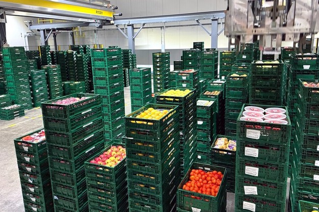 Las cajas de productos hortofrutícolas pueden pesar hasta 20 kilos. Los camiones se cargan a 2 metros de alto, y cargar cajas de 20 kg a esa altura a menudo presenta una dificultad para los empleados humanos; la tecnología logística ayuda a facilitar sus trabajos.