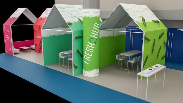Una vez más, Mucci Farms patrocina la sala de descanso. "Nos permite apoyar a la CPMA dando la bienvenida a los asistentes al evento", dice Stephen. Para adaptarse al tema del evento, lleva el nombre de Fresh HUB, y ofrece un espacio acogedor que estará equipado con mesas, cápsulas y espacio para reuniones, así como refrigerios. Es un lugar donde los asistentes pueden descansar, recargarse, trabajar un poco o mantener una reunión. El Fresh HUB está ubicado justo antes de la entrada a la superficie expositiva, y el equipo de Mucci Farms espera que los asistentes aprovechen el espacio.
