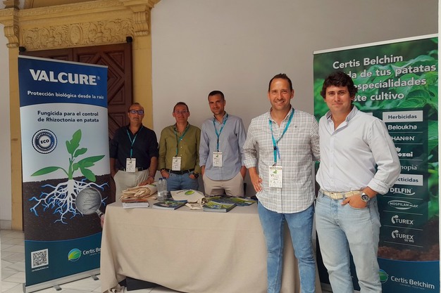 Tras profundizar en las características del seguro de la patata de la mano de Juan Francisco Delgado, director territorial en Andalucía de Agroseguro, y de Pedro Vicente Martín, de MAPFRE, David Rubio, de Certis Belchim presentó un nuevo fungicida para el control de enfermedades en suelo en patata.