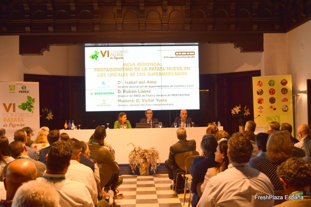 A lo largo del encuentro también se celebraron dos mesas redondas, una en torno al protagonismo de la patata nueva en los lineales de los supermercados, con la participación de Isabel Amo, gerente de la Asociación de Supermercados de Castilla y León; el director de RREE de Fruta y Verdura de Mercadona, Rubén López, y Víctor Yuste, director general del Foro Interalimentario, que ha actuado de moderador.