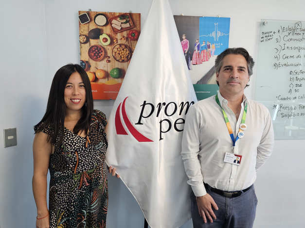 Sayuri Sakihama Meléndez, subdirectora de Promoción Comercial, y Juan Antonio Portugal Quinteros, coordinador del Departamento de Agronegocios y Productos Pesqueros.
