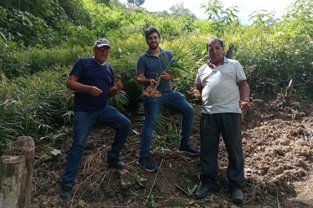 Antonio Méndez, en el centro, de Only Bio Perú SAC, con productores de jengibre en Perú.