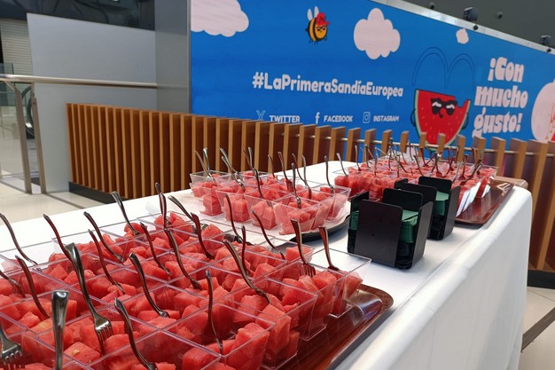 Esta mañana la Asociación de Organizaciones de Productores de Frutas y Hortalizas de Almería, COEXPHAL, ha presentado el vídeo que desvela el origen de la sandía. Esta acción, que se enmarca en la campaña de promoción "La primera sandía europea. ¡Con mucho gusto!", se ha llevado a cabo en el Centro Comercial Torrecárdenas de Almería.