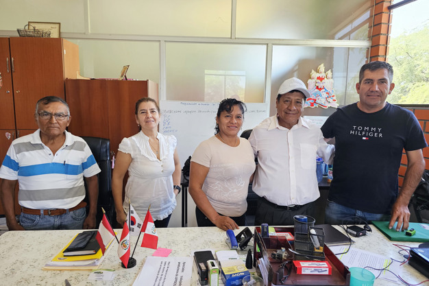 Parte del equipo directivo de APPBOSA (de izquierda a derecha): Ermitaño Socola (vocal del consejo de administración), Marcia Herrera (responsable de certificaciones), Flor de María Alvarado (secretaria de actas), Valentín Ruiz (presidente) y Percy Arnaldo Ordinola (vicepresidente).