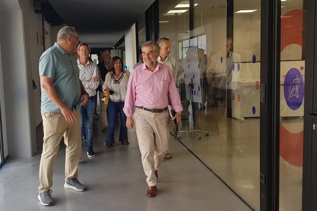 El gerente de APROA, Luis Miguel Fernández, ha acompañado a José Manuel López Medina, responsable de la Subdirección de Actuaciones en Fondos Agrícolas; Pedro García Reche, del Servicio de Intervención de Producción Hortofrutícola, Vitivinícola e Industriales, y José M.ª Bayo Mayor, jefe de Servicio de Ayudas en la Delegación de Agricultura de Almería, quienes han recorrido las nuevas instalaciones del CIT COEX y han conocido de primera mano todas las actuaciones y los proyectos de investigación que se están desarrollando en este centro de innovación. También han asistido a la visita José Manuel Fernández Archilla y Alejandra Rodríguez, de VICASOL; Antonio Sánchez Baños, Honorio Sánchez Román y Javier Moreno López, de MURGIVERDE, y Diego Calderón y Dolores Guillén, de UNICA Group, así como Jesús Valencia, técnico de Cooperativas Agro-alimentarias de Andalucía, y personal técnico de APROA.