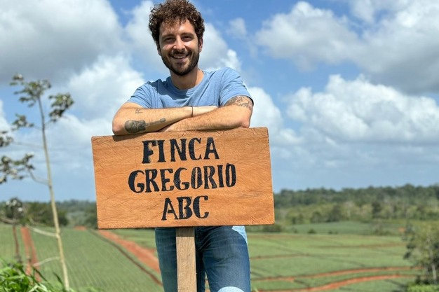 Gregorio Pagni en Costa Rica visitando a un productor de piñas.