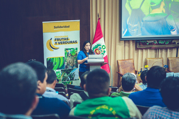 En el Perú, la organización apoya a mineros artesanales y de pequeña escala y productores de café, palma aceitera sostenible, cacao y frutas, con énfasis en la pequeña industria, pero trabajando con todos los actores de cada cadena. En el sector de frutas, el grupo de productos más grande es el del banano, cuya comercialización –tras el desinterés en los años 90 de las grandes compañías bananeras por el comercio justo– se inició en colaboración con AgroFair. Además, en estos últimos años en el programa de banano de Solidaridad han ganado relevancia temas como el cuidado del medio ambiente, la agricultura de bajas emisiones y el empoderamiento de la mujer.