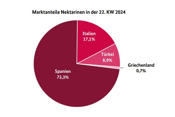 Evidentemente, los lotes españoles dominaban el mercado, tanto para la fruta de carne amarilla como para la de carne blanca. Los suministros de Italia y Turquía eran, a lo sumo, de carácter complementario. La oferta griega solo apareció en cantidades muy pequeñas en Fráncfort. En general, la calidad fue convincente, con la excepción de los productos italianos al principio de la temporada. Según el BLE, la disponibilidad había aumentado con respecto a la semana anterior. La demanda no siempre pudo seguir este ritmo. En consecuencia, los minoristas se vieron a menudo obligados a rebajar sus demandas anteriores.