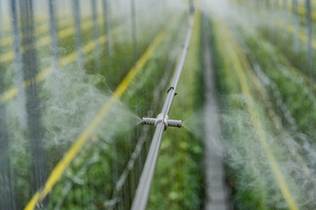 La nebulización de alta presión consiste en inyectar gotas de agua de 3-5 micras en el aire para aumentar la humedad y bajar la temperatura, manteniendo constantes los niveles de entalpía. Esto favorece la apertura de los estomas, esencial para la absorción de CO₂ y la fotosíntesis, y mejora la transpiración, crucial para el transporte de nutrientes y el equilibrio hídrico de las plantas. La eficacia del sistema depende de un control preciso para garantizar que las gotas de agua se evaporen antes de llegar a las plantas, reduciendo el riesgo de hongos. Los sensores controlan diversos parámetros para ajustar con precisión la nebulización en las distintas estaciones y condiciones climáticas.