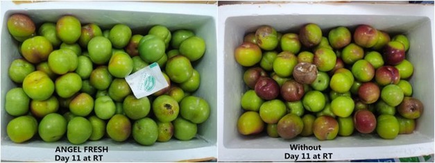 "La mayoría de las ciruelas se cosechan a altas temperaturas. El almacenamiento a bajas temperaturas puede causar podredumbre parda, mientras que las altas temperaturas pueden provocar podredumbre y deterioro. Además, los daños mecánicos durante el almacenamiento y el transporte aumentan las pérdidas. Es fundamental recolectar y almacenar adecuadamente las ciruelas para reducir las pérdidas de ventas y ampliar su disponibilidad en el mercado", explica Debby. "Para solucionar este problema, hemos desarrollado Angel Fresh, un conservante adecuado para las ciruelas. Su principal ingrediente activo, el 1-MCP, es un eficaz inhibidor del etileno que mantiene las ciruelas frescas y prolonga su vida útil".