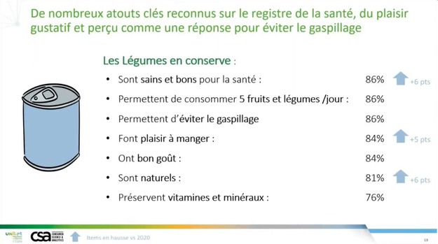 Pero las hortalizas en conserva y congeladas sufren de ideas preconcebidas. El 70% de los franceses está convencido de que las hortalizas en conserva contienen conservantes, y el 51% de que las congeladas también. "Por supuesto, esto es completamente falso, ya que el principio es que la conservación se consigue por apertización (tratamiento térmico en un entorno herméticamente cerrado para la conservación) y por frío para la ultracongelación", detalla Cyrille Auguste, que pide una mayor comunicación sobre este punto con los consumidores.