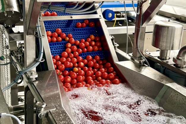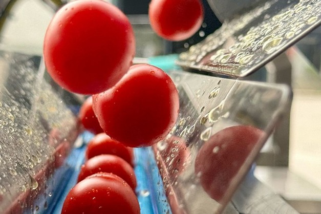 Pero, ¿cuál es la ventaja de utilizar una máquina PND? "Es una máquina rápida, ya que alcanza una capacidad de producción de unos 200 kg de tomates cherry por hora", responde Virginia Cascella, "pero también es muy segura porque está diseñada para cumplir todas las normas de seguridad exigidas por la legislación vigente. Por supuesto, también es innovadora, puesto que prevé una carga automática inédita en el mercado para esta aplicación. Los tomates se vierten en la cuba de lavado y mediante un elevador se transportan a la cinta de carga que los alinea y los traslada a la estación de corte".