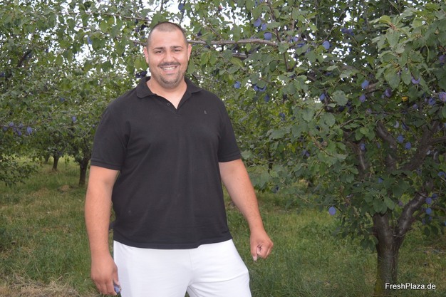 Nikola Jovanovic es la segunda generación al frente de la empresa familiar. Al fondo: las últimas ciruelas tempranas de la variedad Rana.