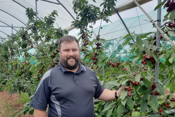 Matthew McIntyre, que cultiva cerezas en Blairgowrie, Perthshire, empezará la cosecha a finales de julio, primero para un agricultor vecino, y después espera comenzar la suya propia de variedades tardías a mediados de agosto.