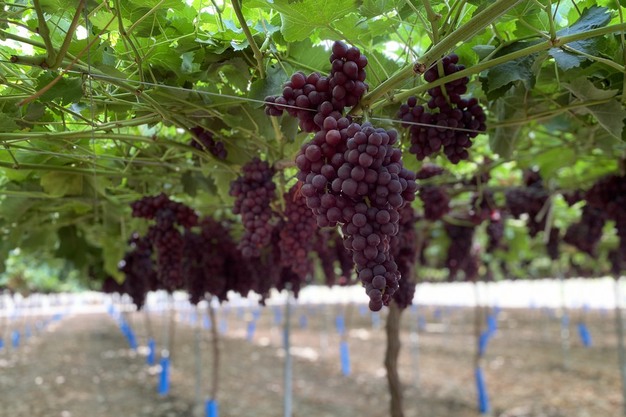 Sugra 53 (Ruby Rush), también en volumen comercial, uva roja sin semillas temprana que se ha dado muy bien en los campos de la costa y está teniendo una gran acogida en los mercados.