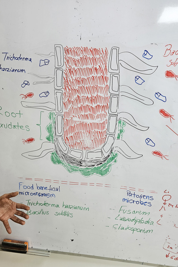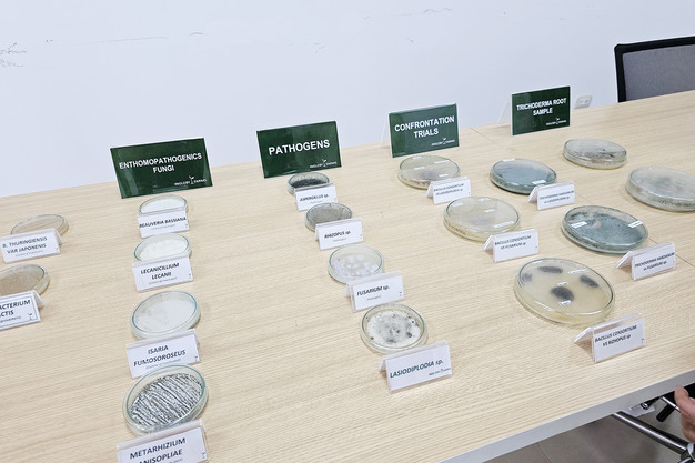 Aparte de la mejora del sistema radicular de las plantas y de la biodiversidad del suelo, el laboratorio de Ingleby Farms Perú se fija como objetivo la investigación en el ámbito del control de hongos y de plagas, este último mediante insectos benéficos, entre los cuales Chrysoperla, y hongos entomopatógenos, es decir, aquellos hongos que producen una patogénesis letal o muy seria en insectos o arácnidos. "En condiciones de laboratorio, los insectos útiles matan al 80-90% de los insectos nocivos. En campo, en cambio, todo depende del tiempo, pero en muchos casos la tasa de mortandad de los insectos perjudiciales ronda el 50-60%. Y en la lucha contra los hongos, vemos que Bacillus consortium y Trichoderma harzianum controlan la dispersión de Fusarium".