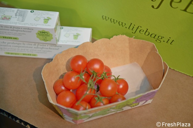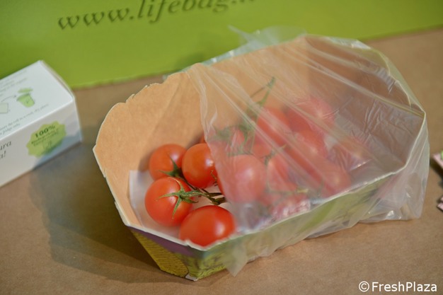 "En primer lugar", dice la empresa, "proponemos LifeBag: una bolsa compostable y biodegradable que puede alargar la vida útil de frutas y hortalizas hasta cuatro veces. Se trata de una capa única perforada que inhibe la proliferación de todos los microorganismos que degradan la calidad de las frutas y hortalizas. Con sus ingredientes activos naturales, esta bolsa crea un entorno ideal para preservar la integridad de frutas y hortalizas".