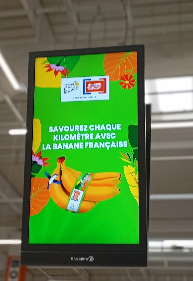 A lo largo del recorrido, tres puestos de bananas (uno fijo y dos móviles) reciben al público con bici-smoothies, fotos de recuerdo y otras sorpresas para los aficionados al Tour. Las bananas de Guadalupe y Martinica también están desplegando campañas de comunicación en supermercados y fruterías durante todo el evento deportivo (cintas/adhesivos, expositores de papel y digitales, escaparates).
