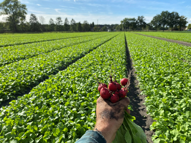 Rob ha notado que el aprecio por los rábanos de cultivo al aire libre es grande. "Empezamos en 2020", explica Rob, "a petición de un cliente, que se dio cuenta de que en los meses de verano la calidad interna de los rábanos de invernadero se estaba deteriorando. En aquel entonces, este cliente compraba el producto en Inglaterra o Alemania".