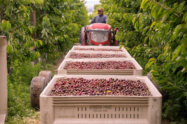 Superfresh Growers cultiva en Oregón y Washington. "Durante los meses de invierno, algunos huertos de gran altitud sufrieron temperaturas bajo cero que afectaron a las cerezas tardías", dice Gipe-Stewart. "Sin embargo, gracias a la ubicación estratégica de nuestros campos, tuvimos la suerte de evitar pérdidas generalizadas y todavía disponemos de mucha fruta de final de temporada. El tiempo ha mejorado, lo que no podría ser más oportuno. Estamos a más de la mitad de la temporada, nuestras cerezas tardías están a punto de madurar para convertirse en cerezas deliciosamente jugosas que pronto estarán listas para la recolección".