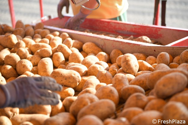 Transferencia de tubérculos al camión.