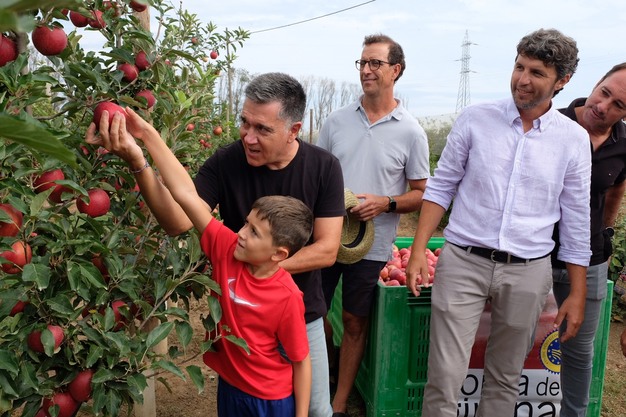 Representantes de la IGP Poma de Girona, la Generalitat de Catalunya, la Diputació de Girona y el escritor y periodista Martí Gironell han dado el pistoletazo de salida de la cosecha. (Fotógrafo: Rafel Bosch/Poma de Girona).