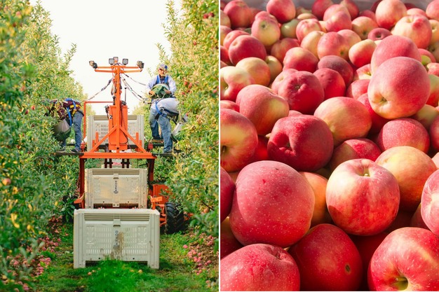 Stemilt Growers está cosechando y envasando las variedades Rave y Gala (izquierda), y ha empezado también con las manzanas SweeTango (derecha).