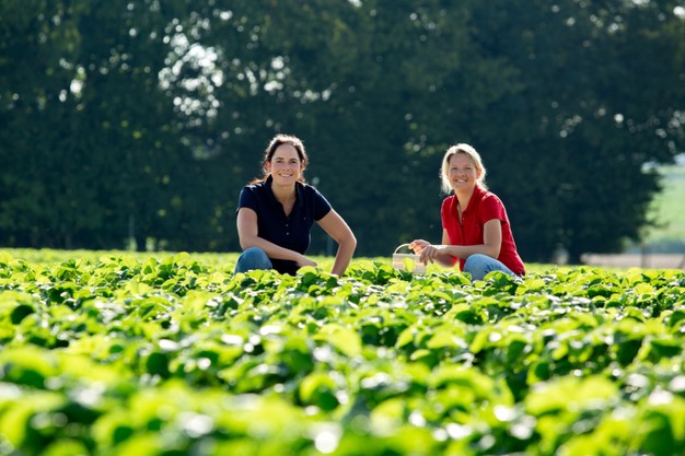 Al igual que otros años, las primeras fresas cultivadas en túnel de las variedades Flair y Clery se cosecharon a finales de abril/principios de mayo. "Como ambas variedades estaban listas para la cosecha casi al mismo tiempo, pudimos ofrecer mayores cantidades al principio de la temporada. Las primeras fresas de exterior se cosecharon a partir del 15 de mayo, que es muy temprano". También en este caso hubo cantidades abundantes desde el principio, de modo que se pudieron abrir antes los campos destinados a que los consumidores recolecten sus propias fresas.