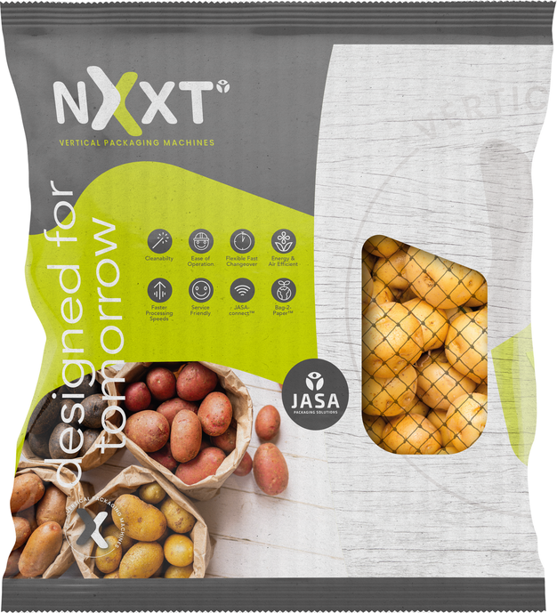 Hay una demanda creciente de materiales de envasado alternativos, como el papel, especialmente para las patatas ecológicas. Además, la sostenibilidad desempeña un papel importante en la elección de los materiales de envasado, lo que lleva a centrarse en la reducción del peso del envase. Por ello, el fabricante de máquinas utiliza técnicas innovadoras para minimizar el desperdicio de material. Optimizando el diseño de sus máquinas, por ejemplo, consigue reducir la anchura de los envases y ahorrar material.