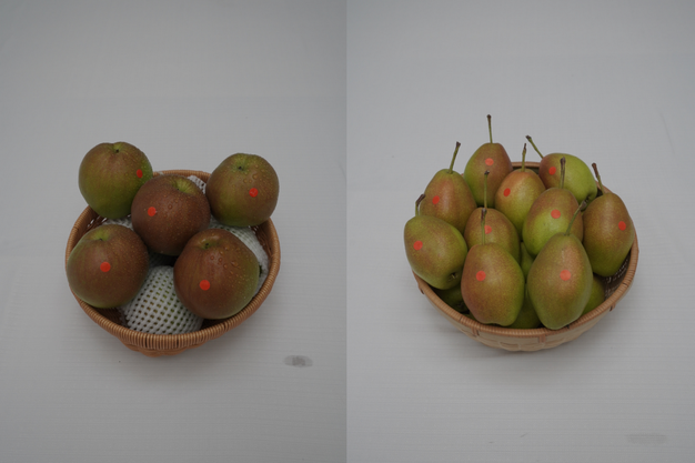 Izquierda: peras Yuluxiang. Derecha: peras Hongxiangsu.