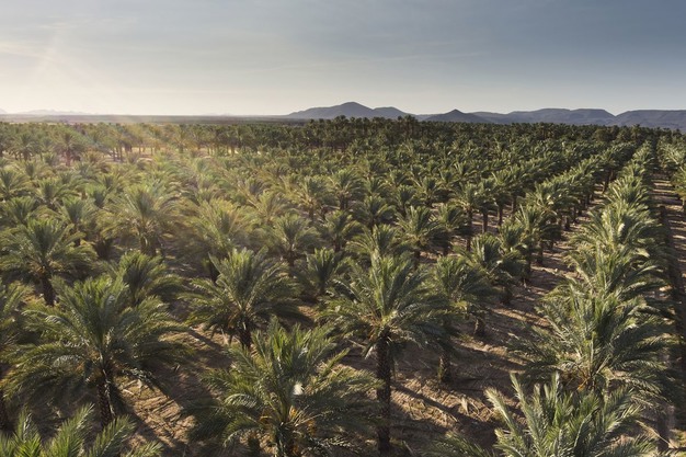 Situada en la frontera entre California, Arizona y México, la región del valle de Bard es una zona única para el cultivo de dátiles. Su microclima se caracteriza por un calor intenso, una humedad baja y una capa freática alta, unas condiciones perfectas para el cultivo de dátiles Medjool. "Para prosperar, los dátiles necesitan 100 días con una temperatura de 38 °C durante el cultivo, y la región del valle de Bard reúne esas condiciones específicas", afirma Bridgette Weber, de Bard Valley Natural Delights. Aunque las condiciones del valle son perfectas para el cultivo de dátiles, el equilibrio es delicado. "Nuestra proximidad a los ríos de Colorado nos proporciona abundante agua, pero las condiciones meteorológicas pueden ser impredecibles". El año pasado, varias tormentas atravesaron la región durante la temporada de cosecha. Este año, la recolección ha empezado con buen pie.