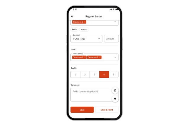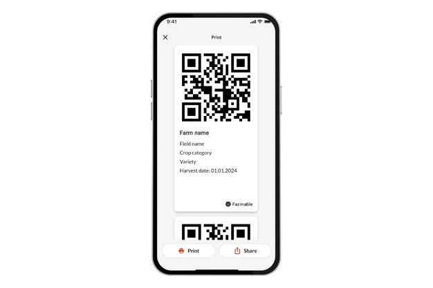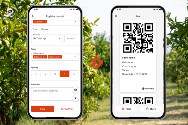 Puedes utilizar la app de Farmable para registrar los lotes cosechados de tu explotación. A partir de hoy, los agricultores pueden también imprimir etiquetas de trazabilidad para registrar las cosechas. Puedes hacerlo cómodamente en el momento de introducir los datos del lote, o volver a los registros históricos e imprimir las etiquetas cuando lo necesites.
