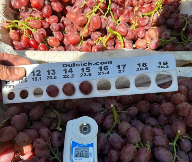 Las uvas de mesa de California tuvieron un interesante comienzo de temporada. La cosecha de México fue más escasa y terminó antes de lo habitual, lo que hizo que el mercado estuviera muy activo cuando empezó la temporada de California. La demanda ha sido fuerte desde el principio, tanto en el mercado nacional como en el extranjero. "Sin embargo, justo al empezar la cosecha en julio, hizo muchísimo calor, tuvimos la ola de calor más larga que he visto nunca", recuerda Nick Dulcich, de Pretty Lady Vineyards. Para protegerse, las vides se apagaron y retrasaron el desarrollo del fruto, lo que se tradujo en uvas con menos niveles de azúcar. La ola de calor no solo provocó un retraso en la maduración, sino que también frenó el ritmo de recolección, pues las altas temperaturas dejaban poco margen de tiempo para la cosecha.