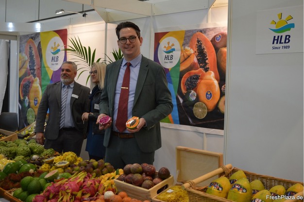 Lorenz Hartmann de Barros en la Fruit Logistica de este año, donde la empresa expone junto con sus colegas americanos de HLB Specialties LLC. Además de papayas, la amplia cartera incluye rambután, mangostán, guayaba, variedades seleccionadas de mango y pitahaya.